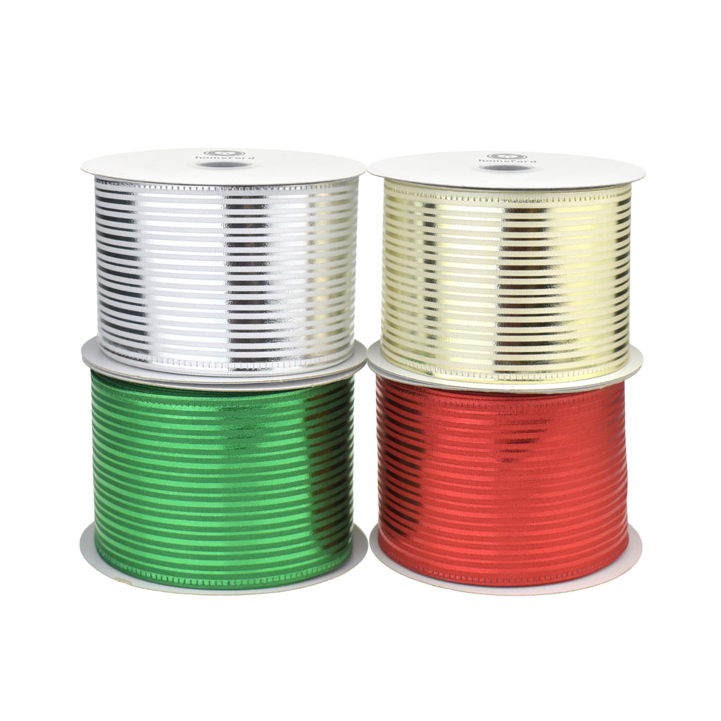 Christmas Vertical Grain Stripes Wired Ribbon, 10-yard