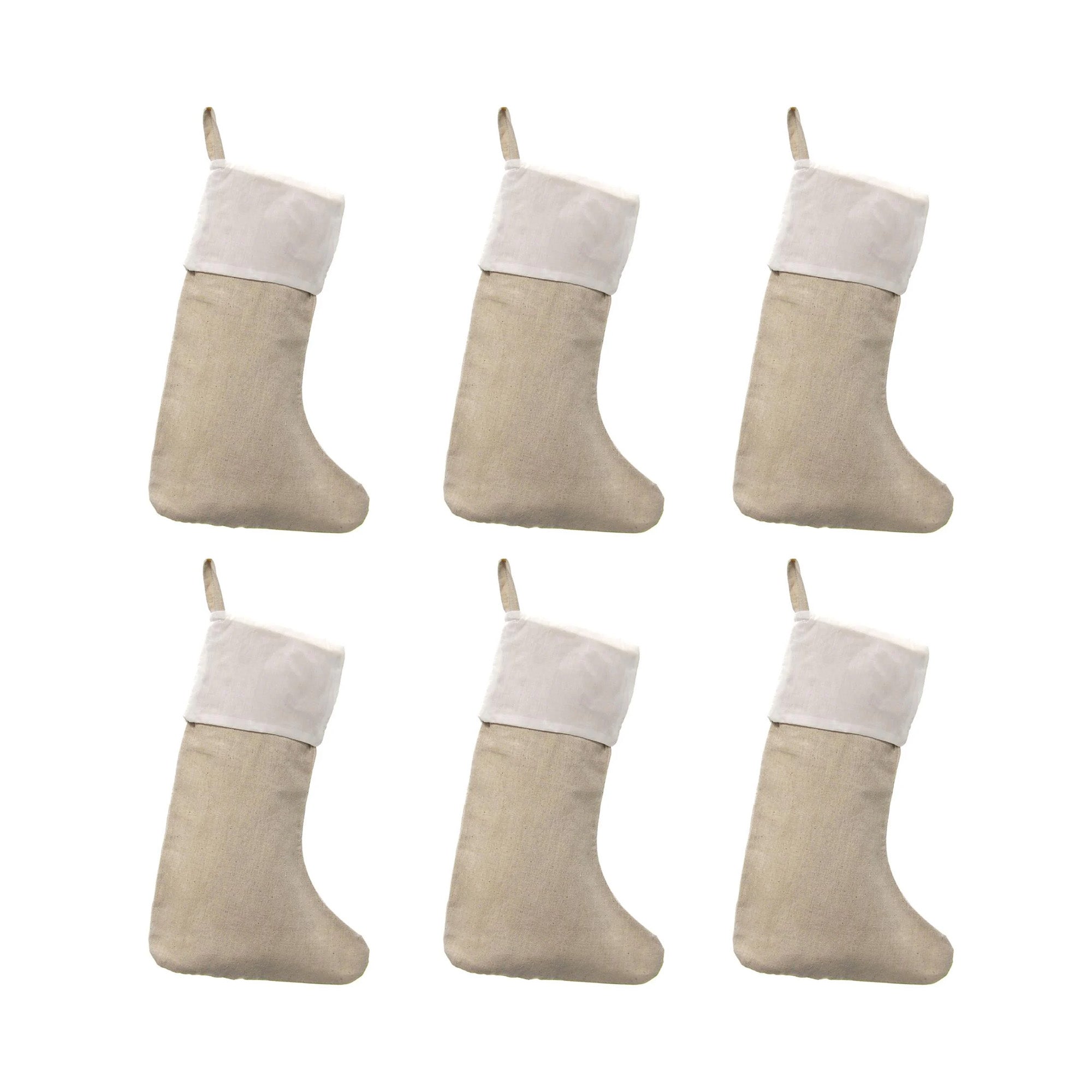 Natural Plain Linen Christmas Stockings with White Cuff, 16-inch, 6-count