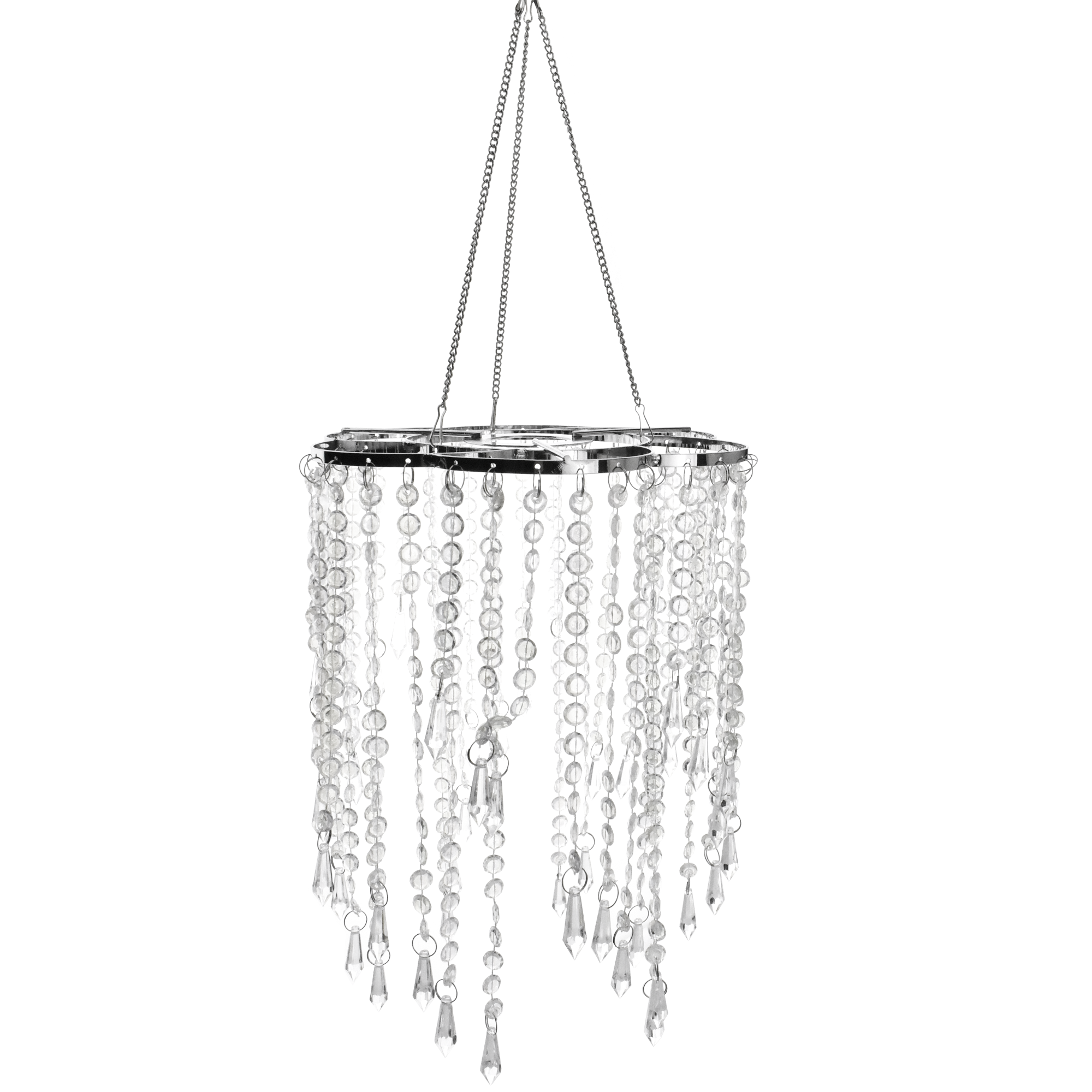 This acrylic chandelier can be hang from the top of the table or use it as the tabletop chandelier centerpiece for your next event. The beaded crystals make a lovely finish to your party planning or home decor. It's easy to hang up and display and even easier to take down and store. Length: 10.5" Width: 9"