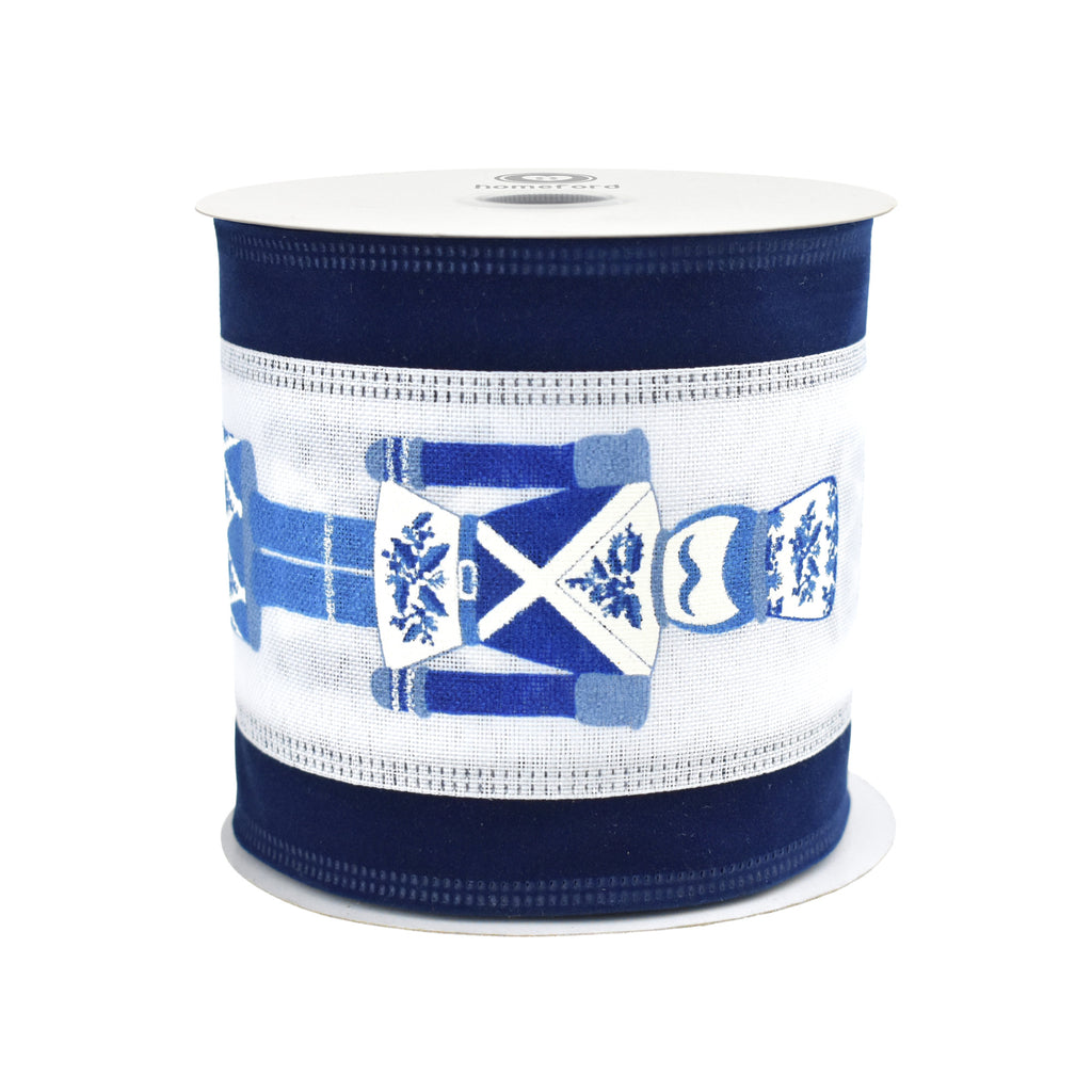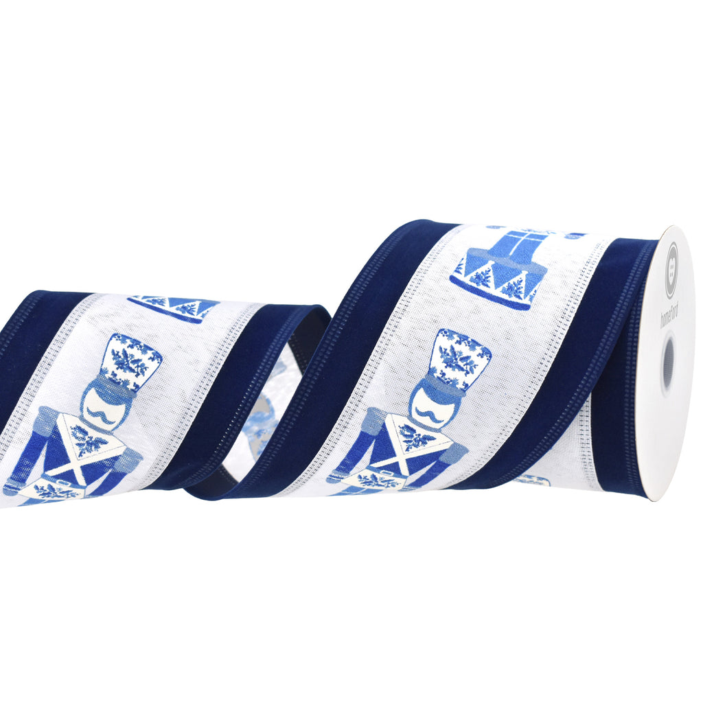 Decorate with grandeur to your Christmas décor with our Chinoiserie Nutcracker Velvet Edge Wired Ribbon. This designer-quality ribbon combines the whimsy of nutcracker figures with the elegance of Chinoiserie styling, highlighted by rich velvet borders. The intricate detailing and wired construction make it perfect for creating lavish bows, stunning tree accents, and statement holiday arrangements.