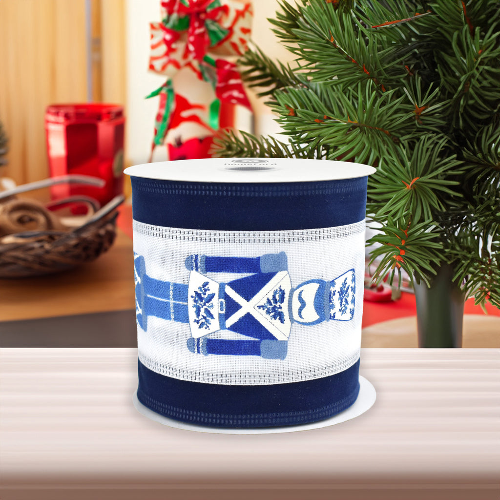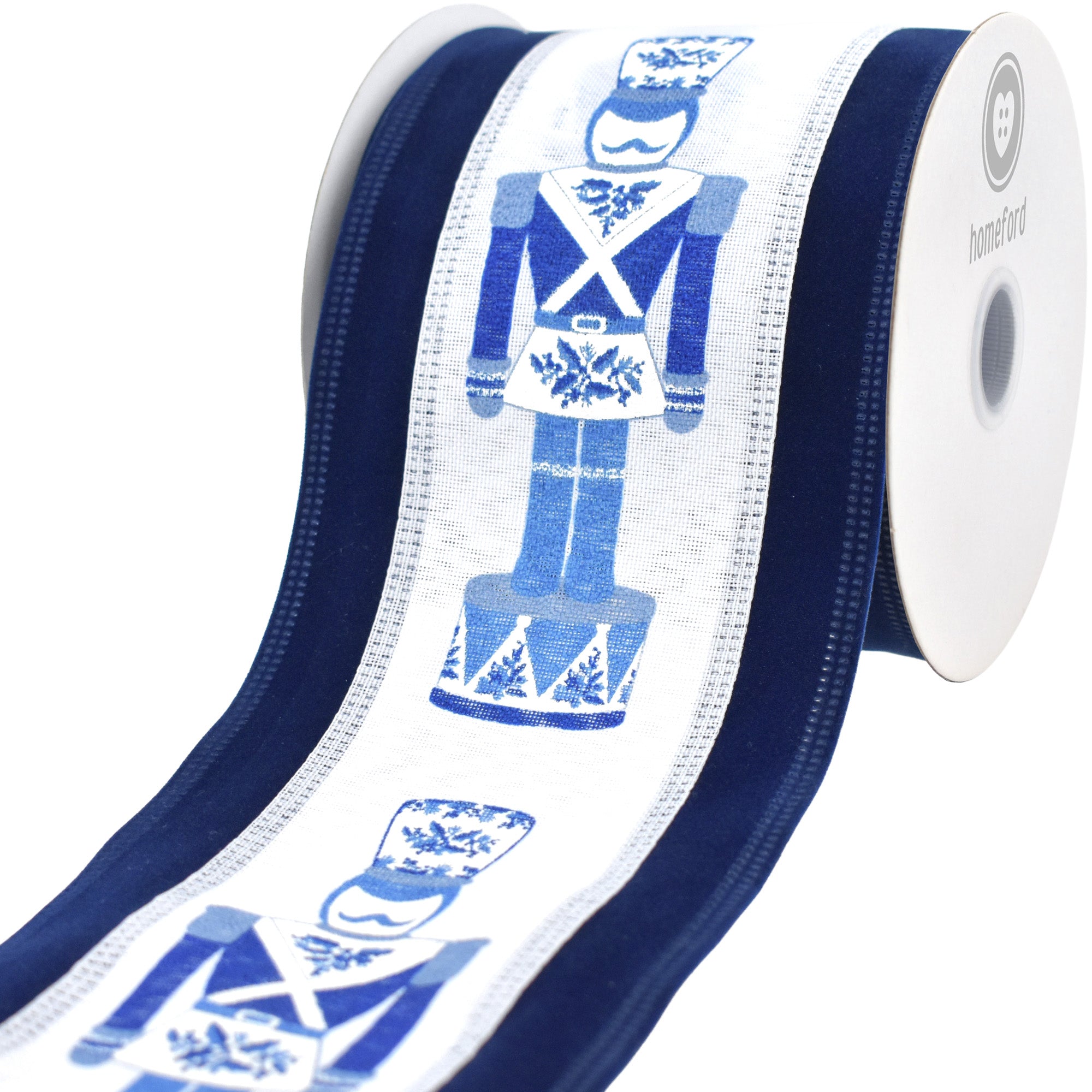 Christmas Chinoiserie Nutcracker Velvet Edge Wired Ribbon, 10-yard