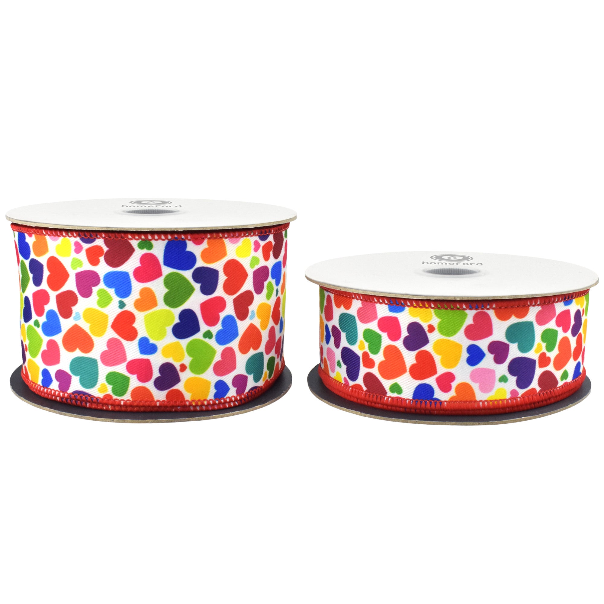 Brighten up your crafts and celebrations with our Colorful Rainbow Hearts Twill Wired Ribbon. Featuring a cheerful pattern of rainbow-colored hearts on soft, durable twill fabric, this ribbon adds a playful and uplifting touch to any project. Perfect for birthdays, events, or simply spreading love and positivity, this ribbon is a fun and versatile addition to your creative supplies.