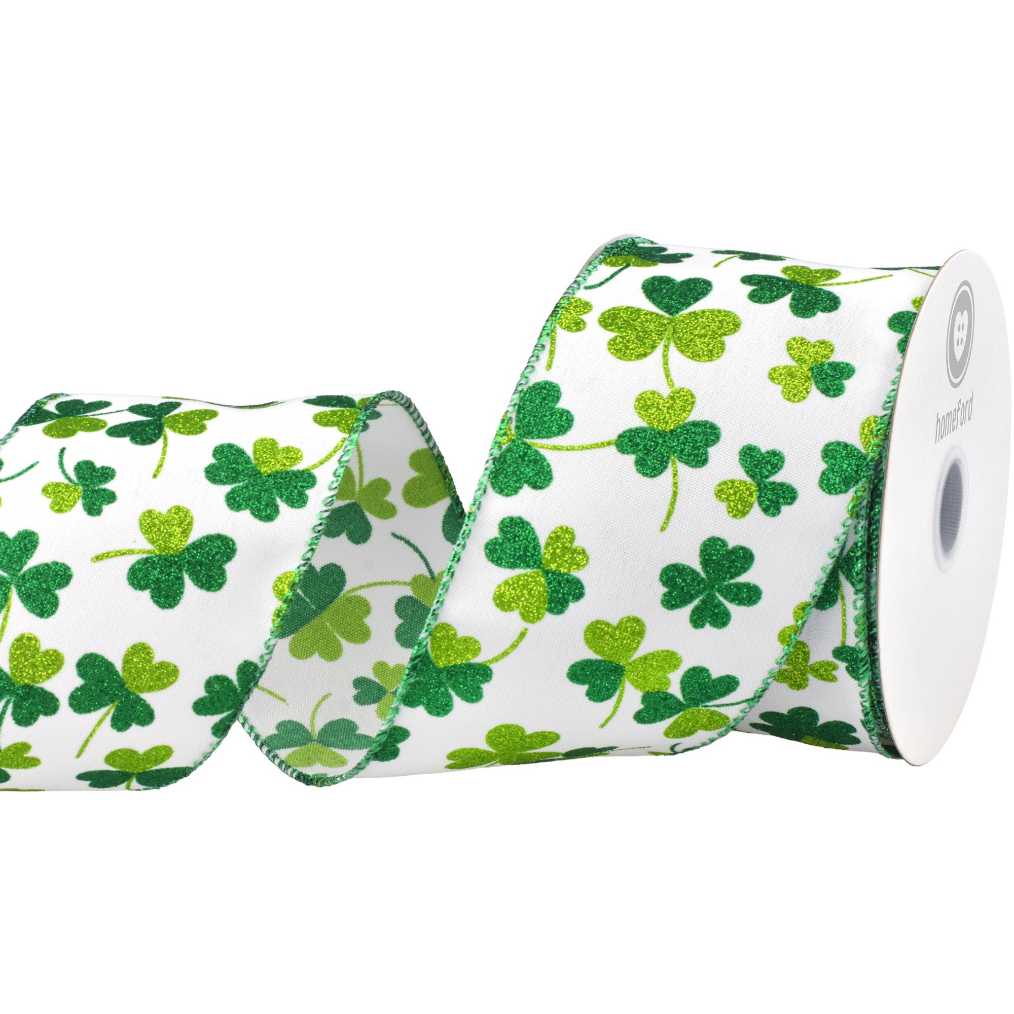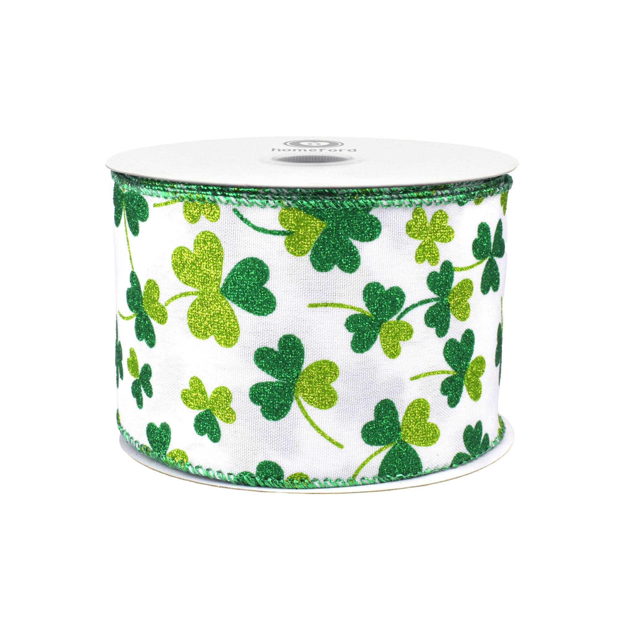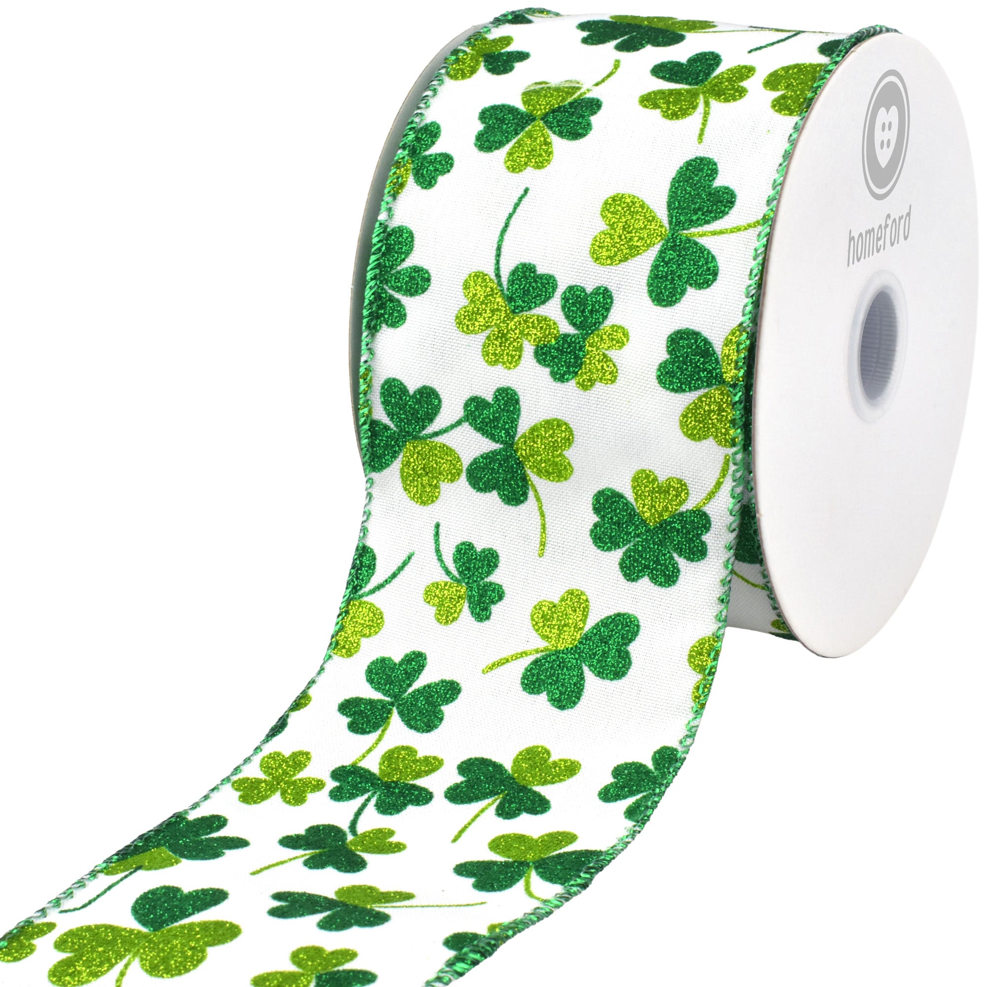 St. Patrick's Glittered Shamrocks Wired Ribbon, 10-yard