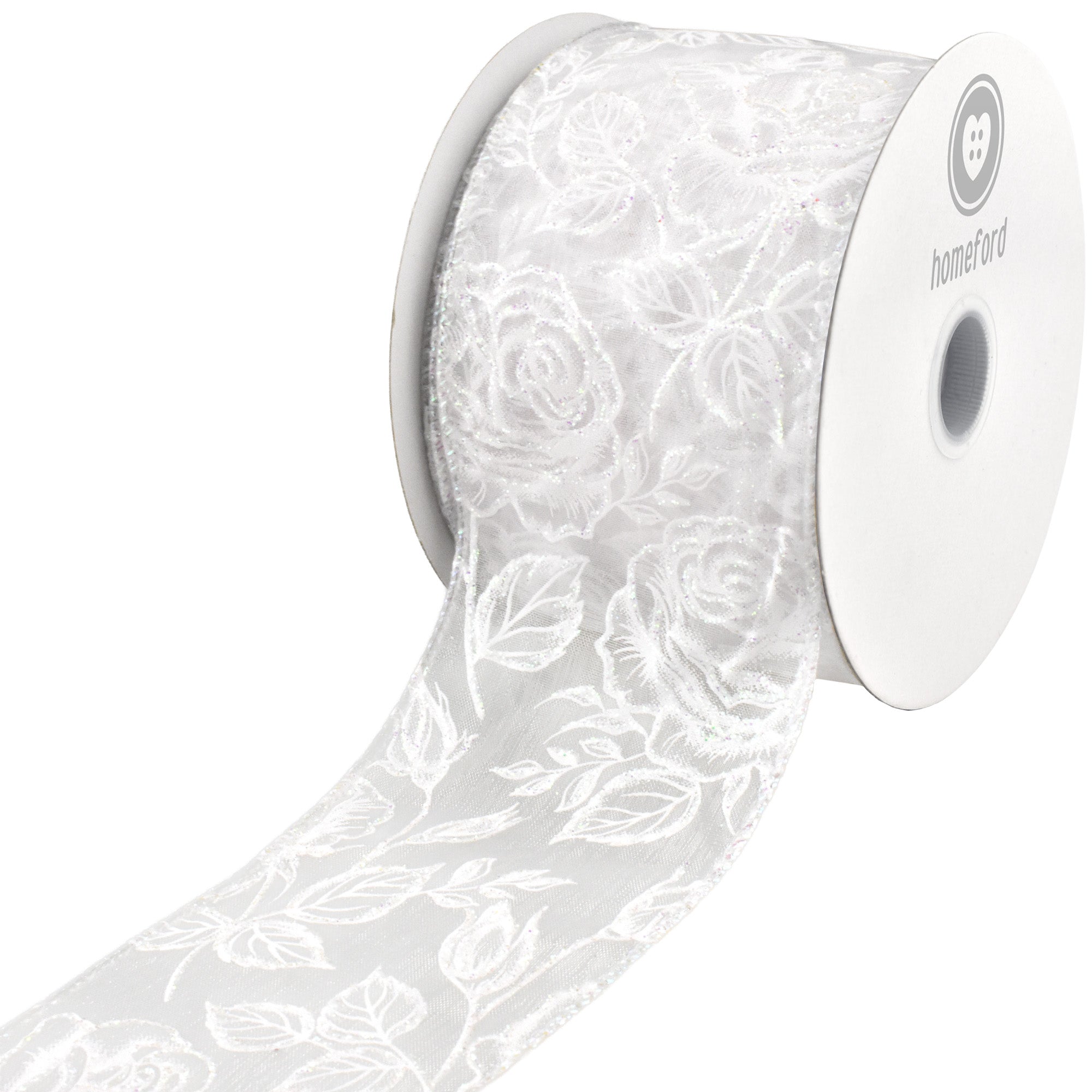 Create dreamy, whimsical décor with our Glittered Roses Sheer Organza Wired Ribbon. The airy organza fabric combined with sparkling rose motifs gives this ribbon a delicate, romantic feel that's ideal for floral displays, gift décor, and seasonal accents. From weddings to Valentine's décor and elegant home displays, this ribbon offers a stunning way to add floral sparkle and sophistication.