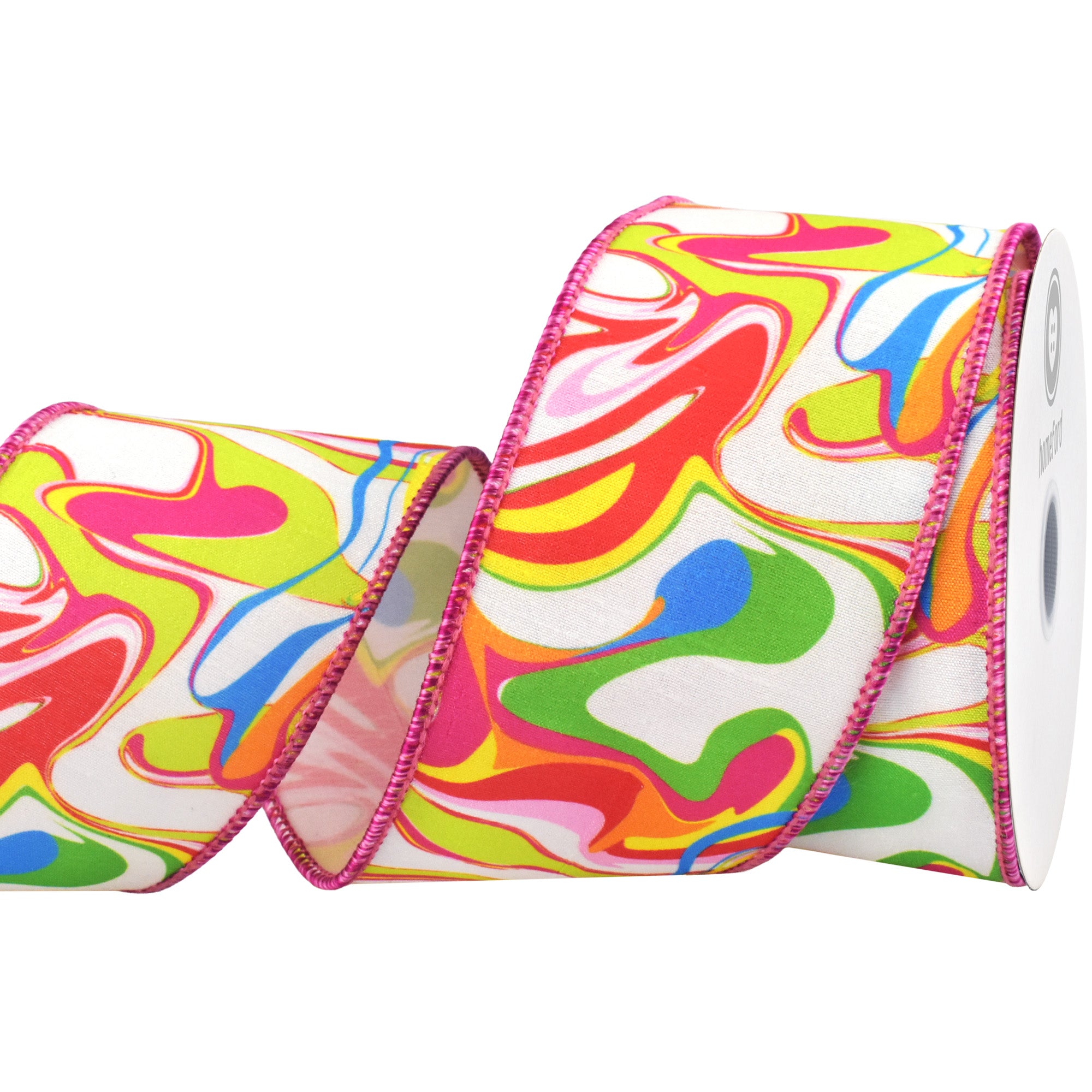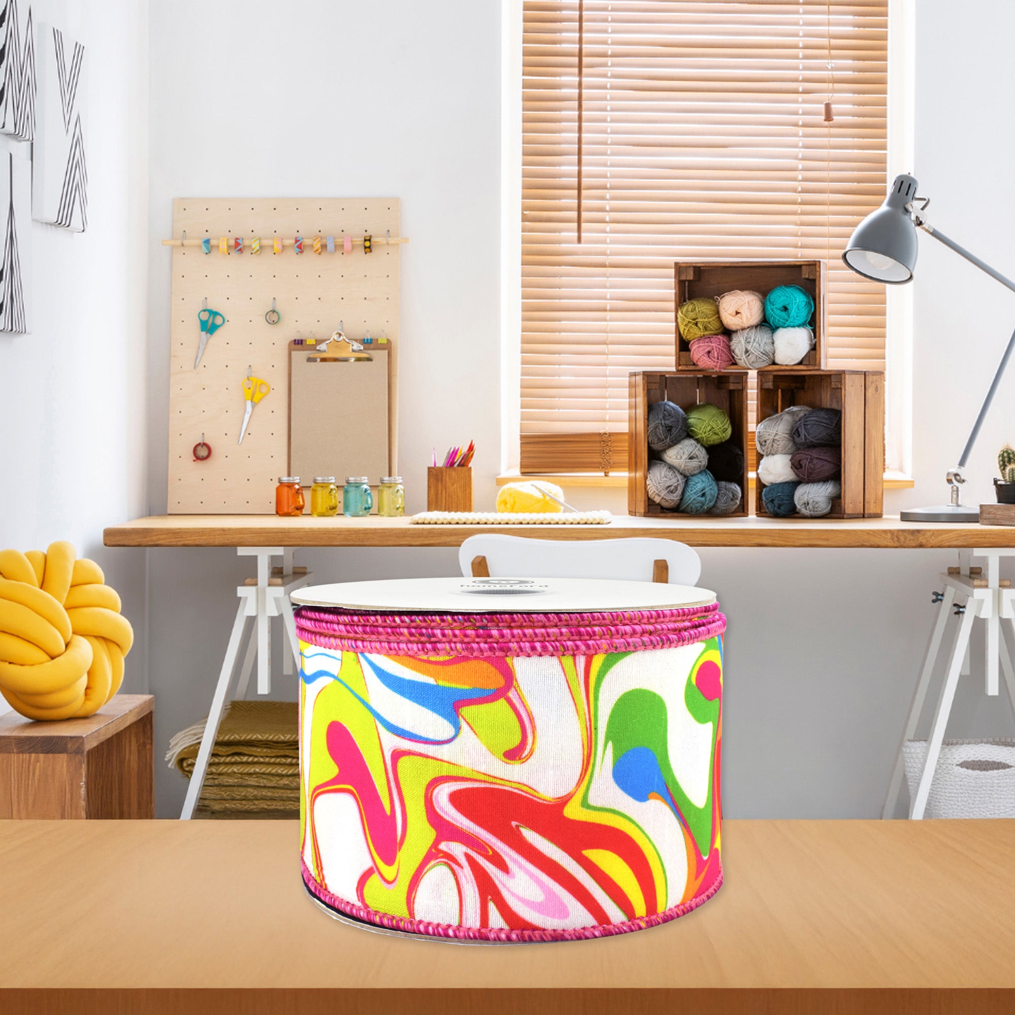 Abstract Bright Ink Mix Pattern Wired Ribbon, 2-1/2-inch, 10-yard