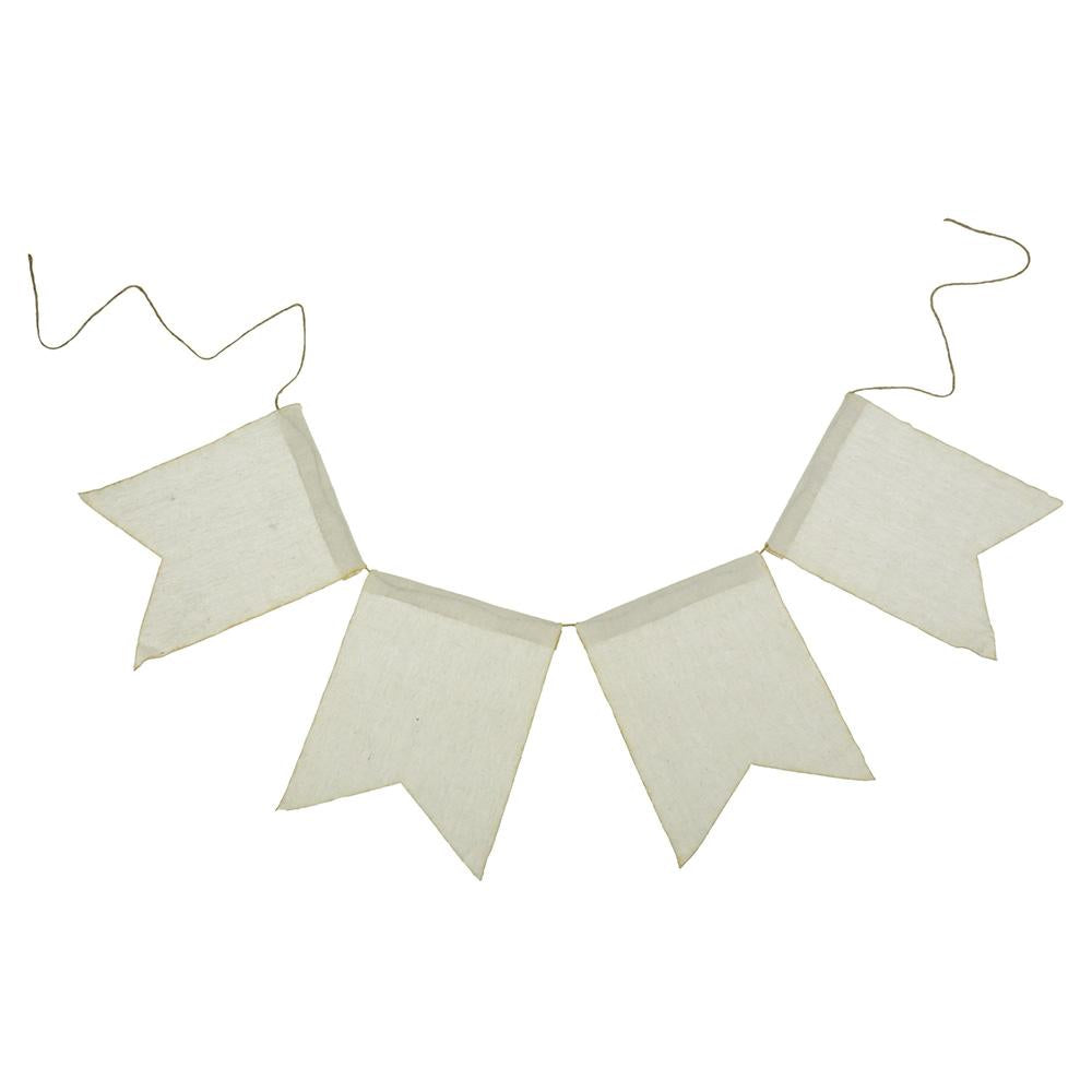 The pennants and cord come separated to customize singular pennants or make a cute garland. Features 4 canvas cut away flag pennants and 1 jute cord.