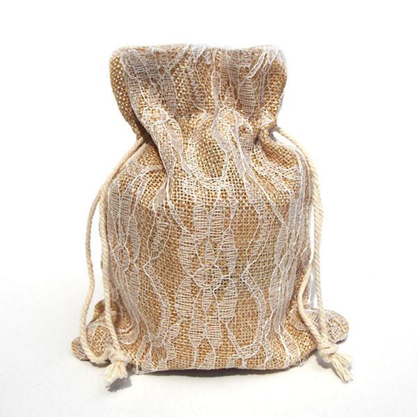 These burlap gift bags have cotton drawstrings, and are great natural gift bags, jewelry bags, wedding favor bags, party favor bags, or for special merchandise bags! The natural burlap ribbon features a delicate white lace center.
