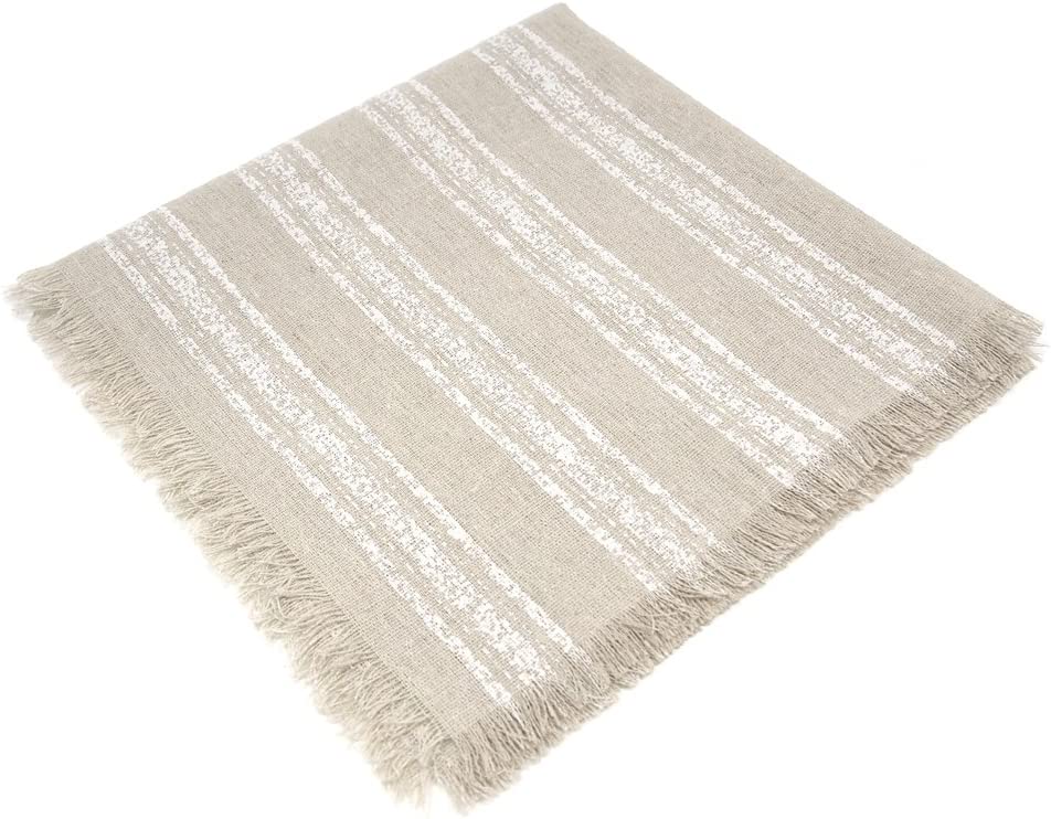 Fringed Linen Sheet w/Stripes, 19-1/2-inch x 19-1/2-inch