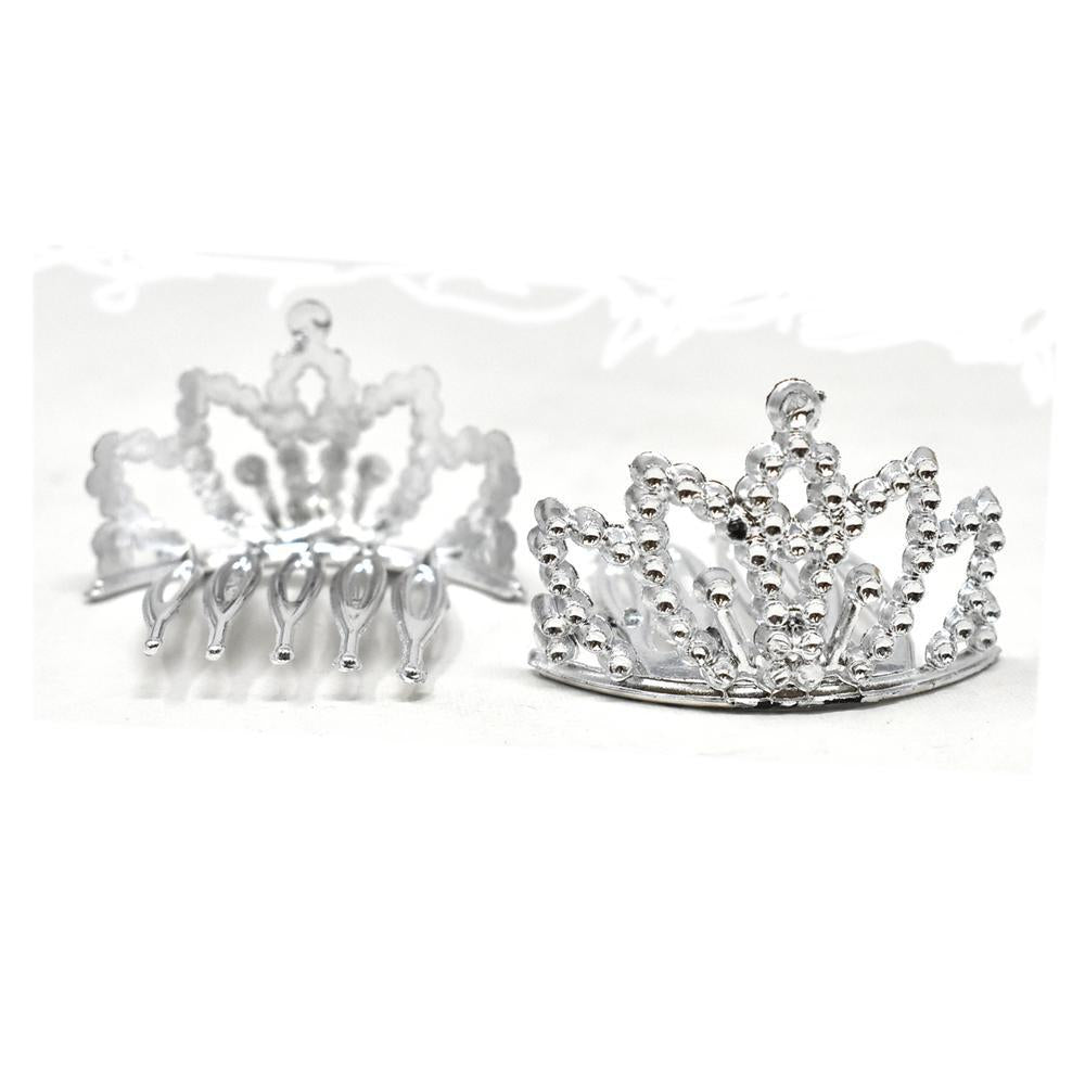 These mini crown hair accessories are the perfect touch for any royal or regal themed event you're having. These can be added into party favor bags or be used at your even's photo booth! These crowns have five comb prongs attached so they can easily be placed on hair!