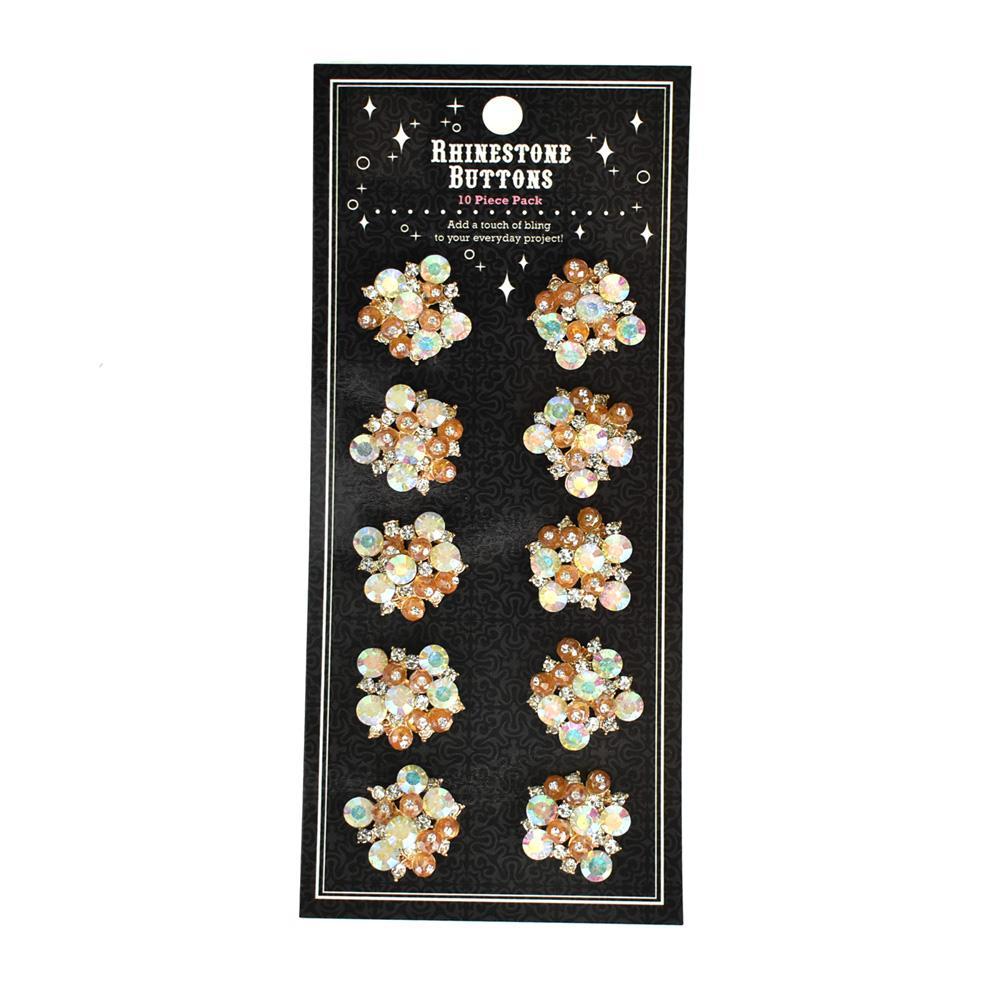 Buttons feature clusters of clear, peach, and iridescent rhinestones. Includes 10 pieces per pack.