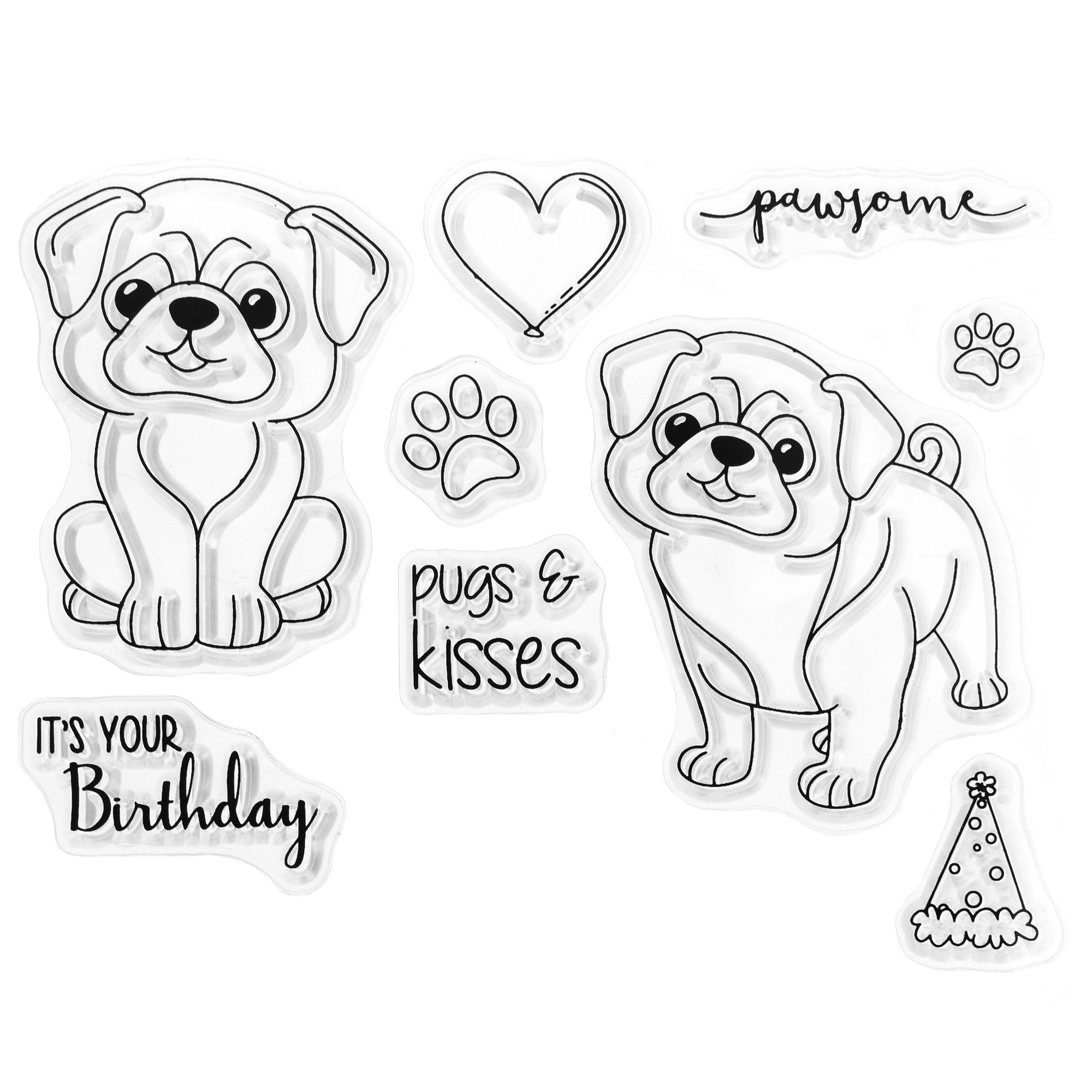Pugs and Kisses Reusable Craft Stamps, 2-inch, 16-piece